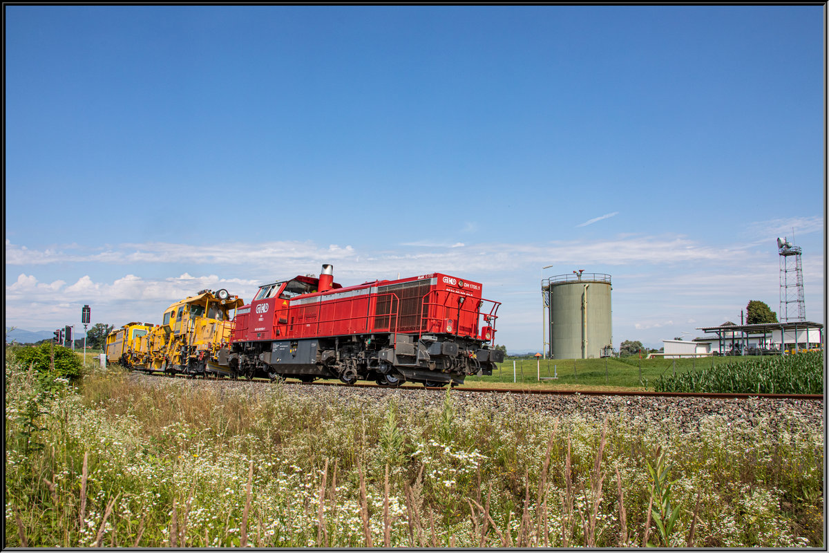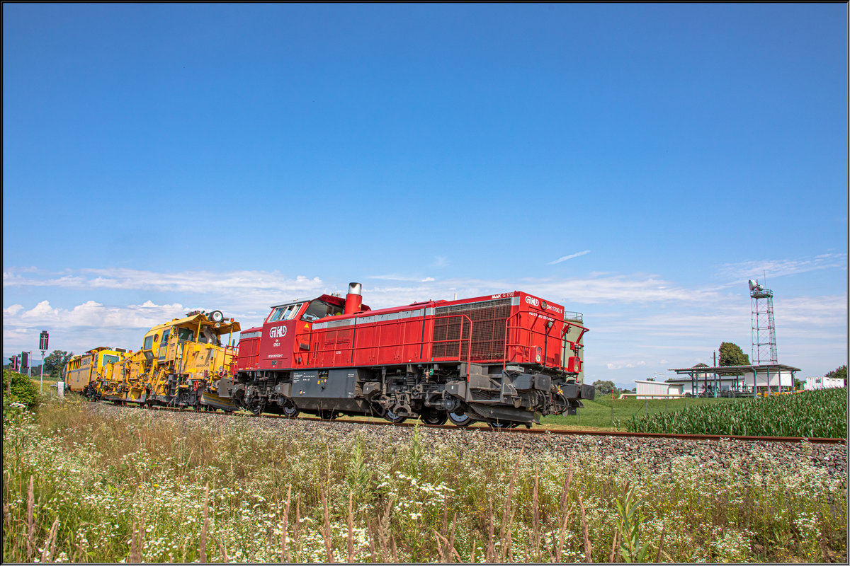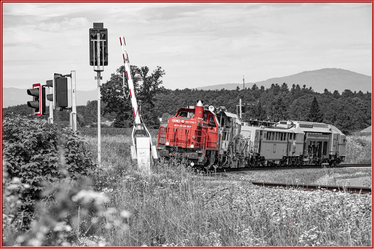 DH 1700.1 mit einer Stopfmaschine und der zugehörigen Schotterbewirtschaftung.
