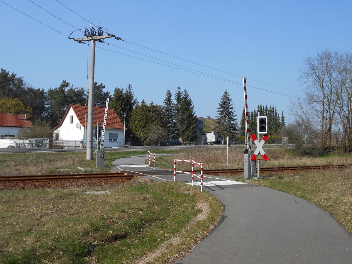 Auch für Fussgänger und Radfahrer gibt es in Hammelspring einen extra Bahnübergang.Aufgenommen am 16.April 2019.