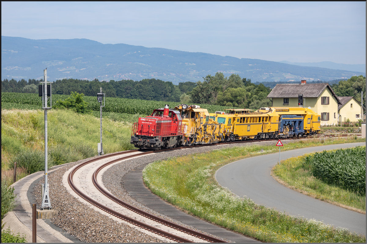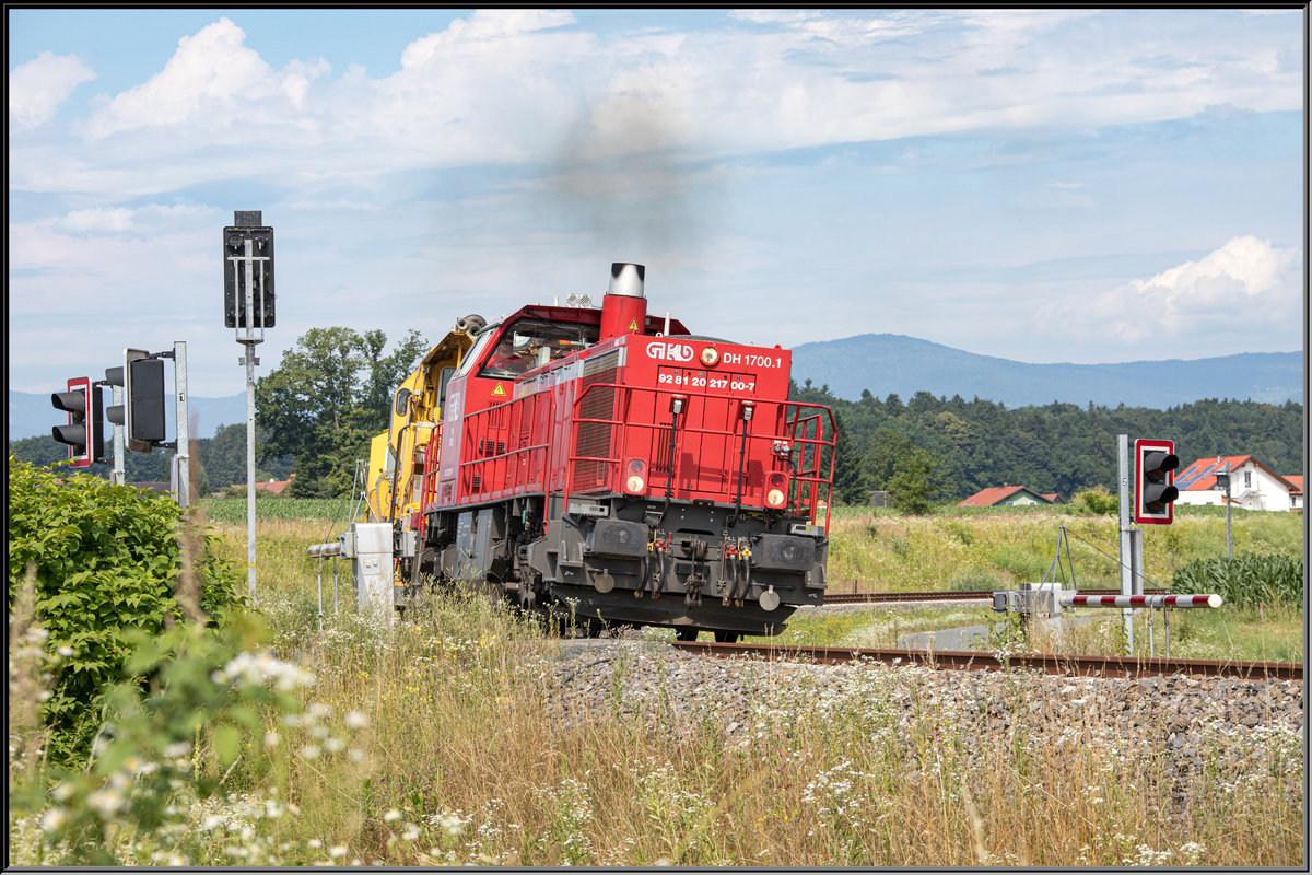 An einer Station der "AWP" ( Adria -Wien" Pipeline) vorbei zieht DH 1700.1 Ihren Zug nach Osten Richtung Hengsberg. 2.07.2019