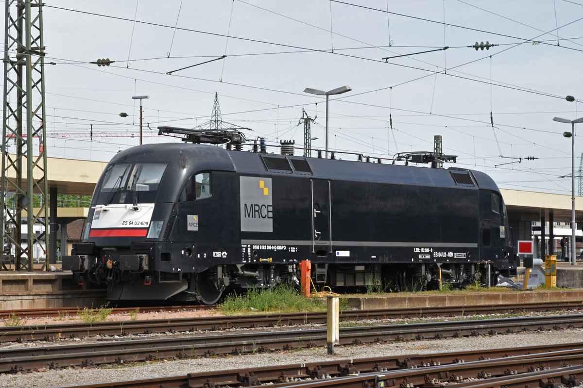 Lok 182 509-0 steht auf einem Abstellgleis beim badischen Bahnhof. Die Aufnahme stammt vom 14.06.2019.