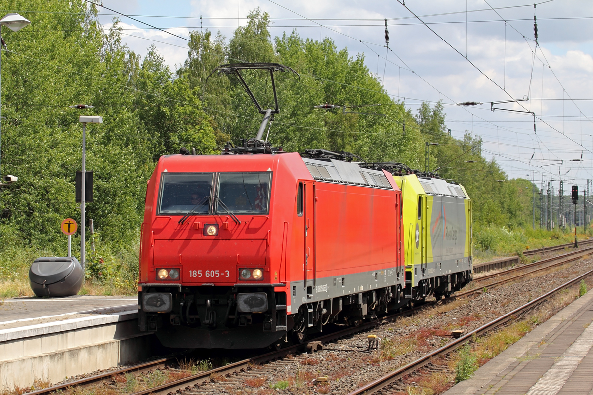 Überholung durch LKW-Walter-Zug mit Doppeltraktion Vectron.