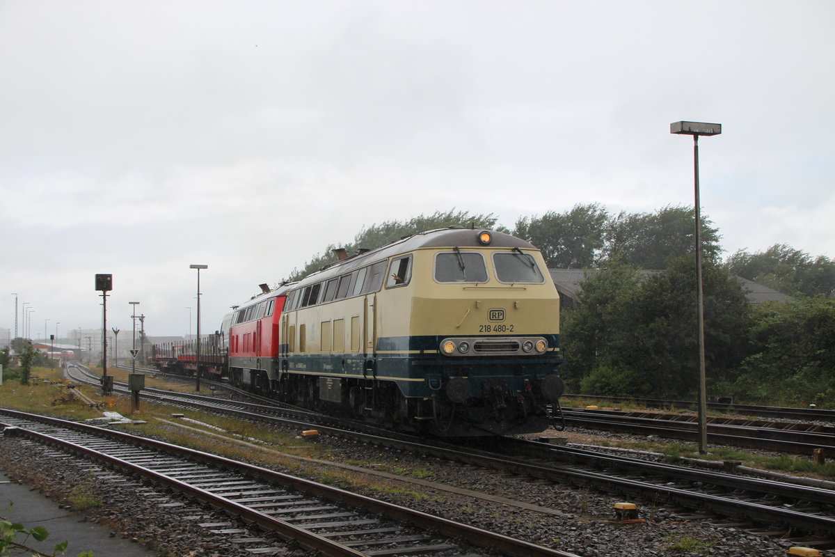 218 480+488 am 05.07.2019 mit einem leeren SyltShuttle in Westerland(Sylt). Gruß zurück! ;)