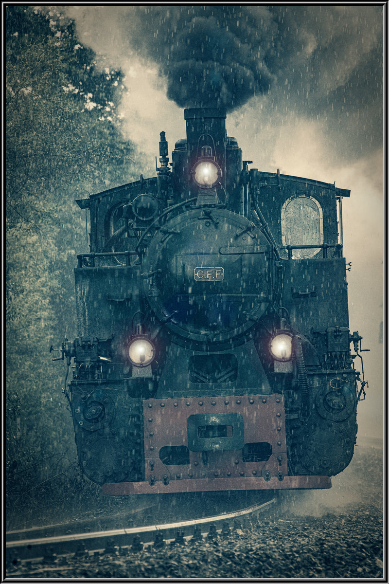Ein kurzer Regenschauer hatte zuvor nach der anhaltenden Hitze etwas Dampf auf die Schienen gezaubert , zu meiner Freude.