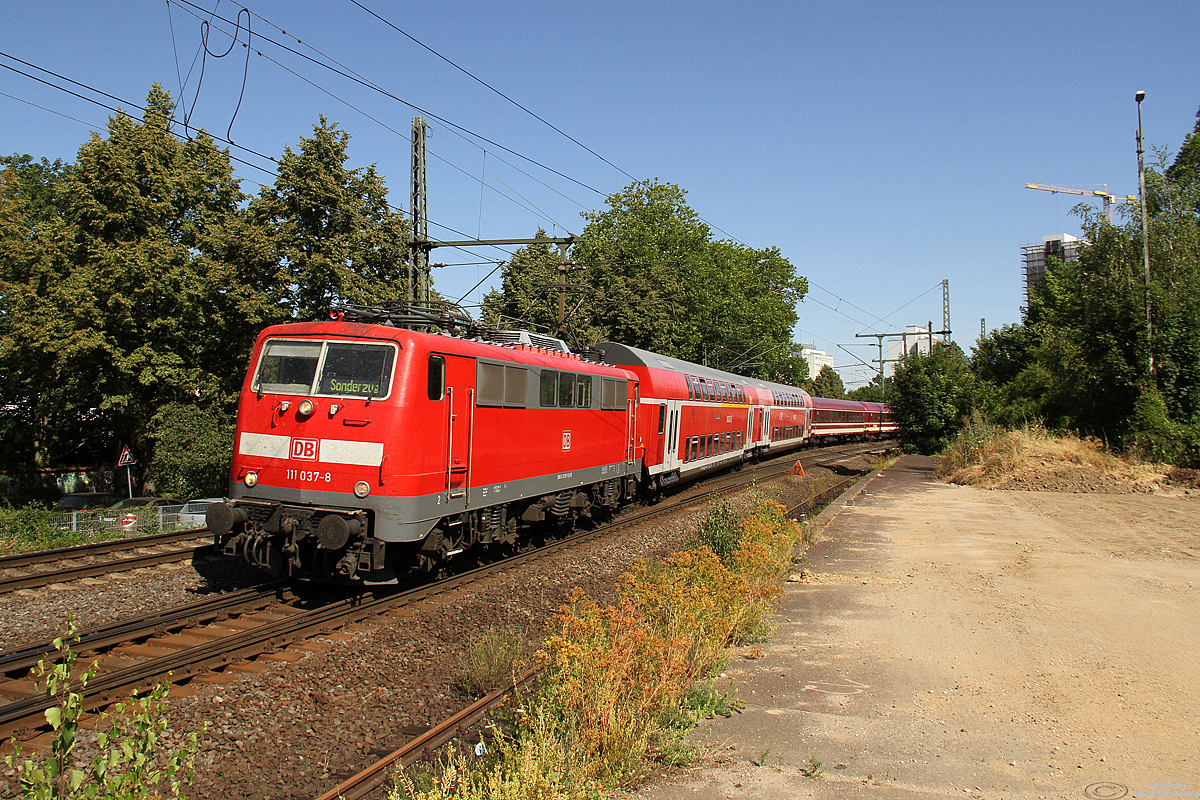 111 037 mit dem Sonderzug "50 Jahre Gymnasium Heisenberg" in BN-Beuel 03.07.2019