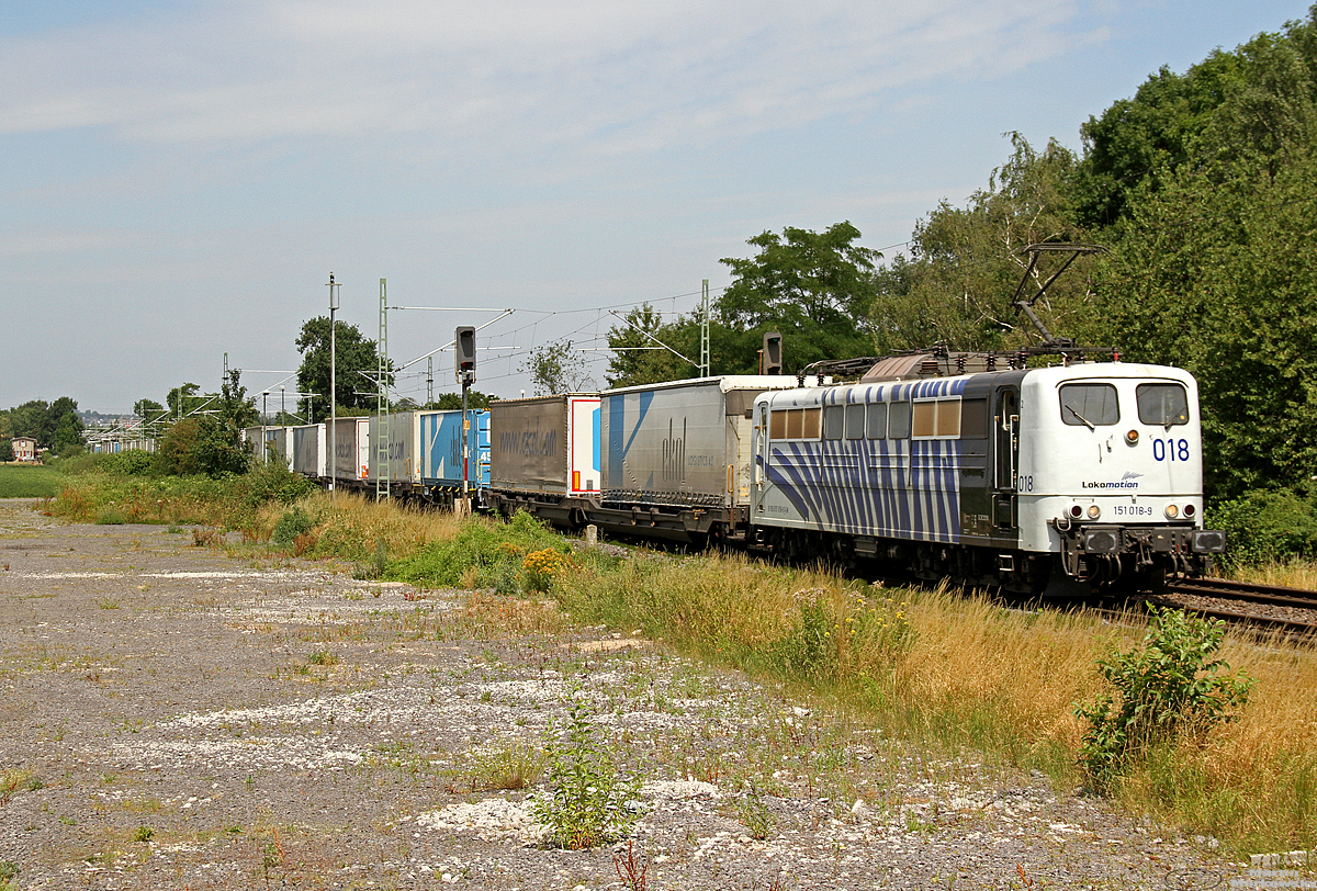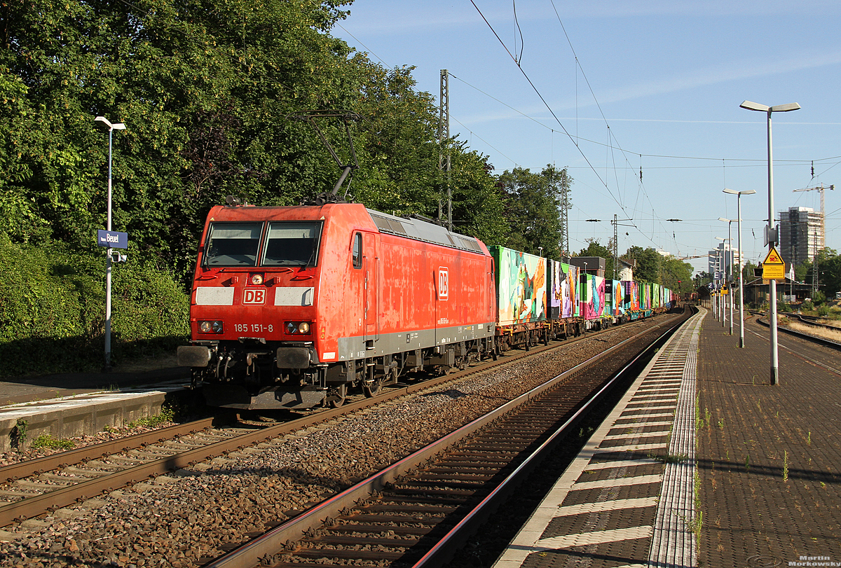 185 151 bringt den "Noahs Train" mit einem Gz nach Luxemburg, BN-Beuel 03.07.2019