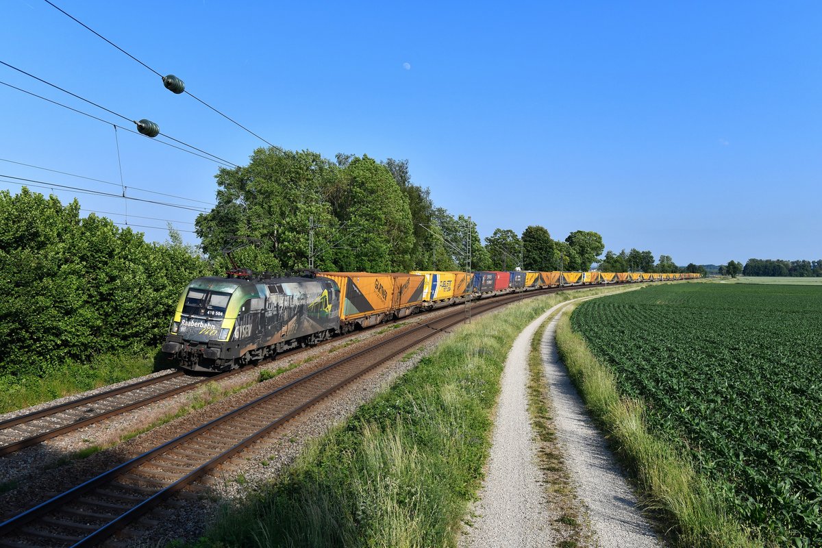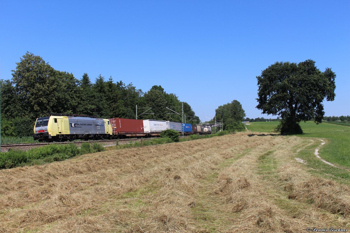 189 902 Lokomotion mit einem Containerzug bei Ostermünchen am 04.07.2019