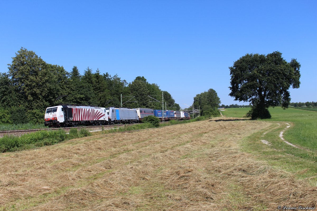 189 905 Lokomotion + 186 282 RP mit einem Paneuropa&Terratrans-KLV bei Ostermünchen am 04.07.2019