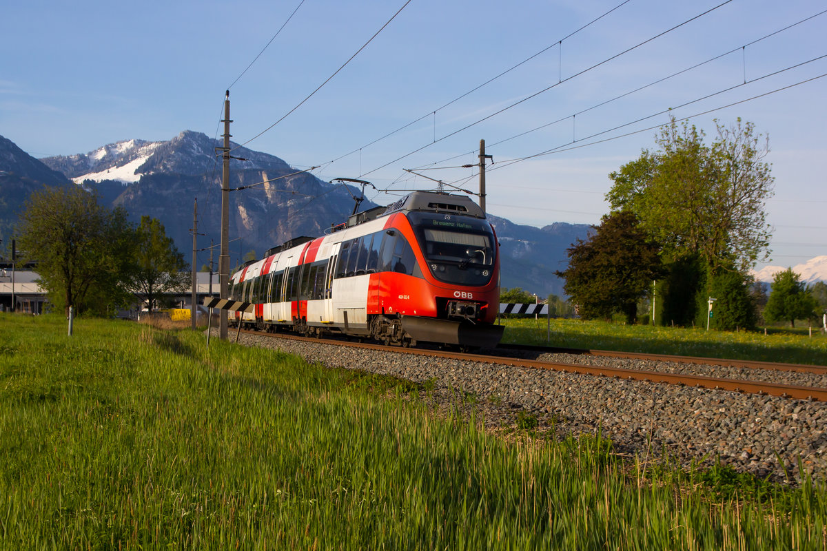 4024 022-8 auf dem Weg zum Bregenzer Hafen. Im Schuttannen gab es vor dem 7.5.19 noch frischen Schnee.