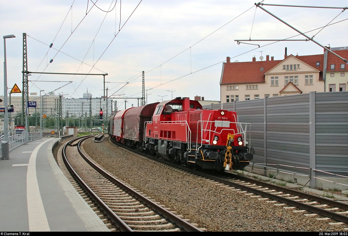 Coilzug mit 261 026-9 (Voith Gravita) DB passiert den Interimsbahnsteig Halle(Saale)Hbf Gl. 13a auf der Ostumfahrung für den Güterverkehr in südlicher Richtung.