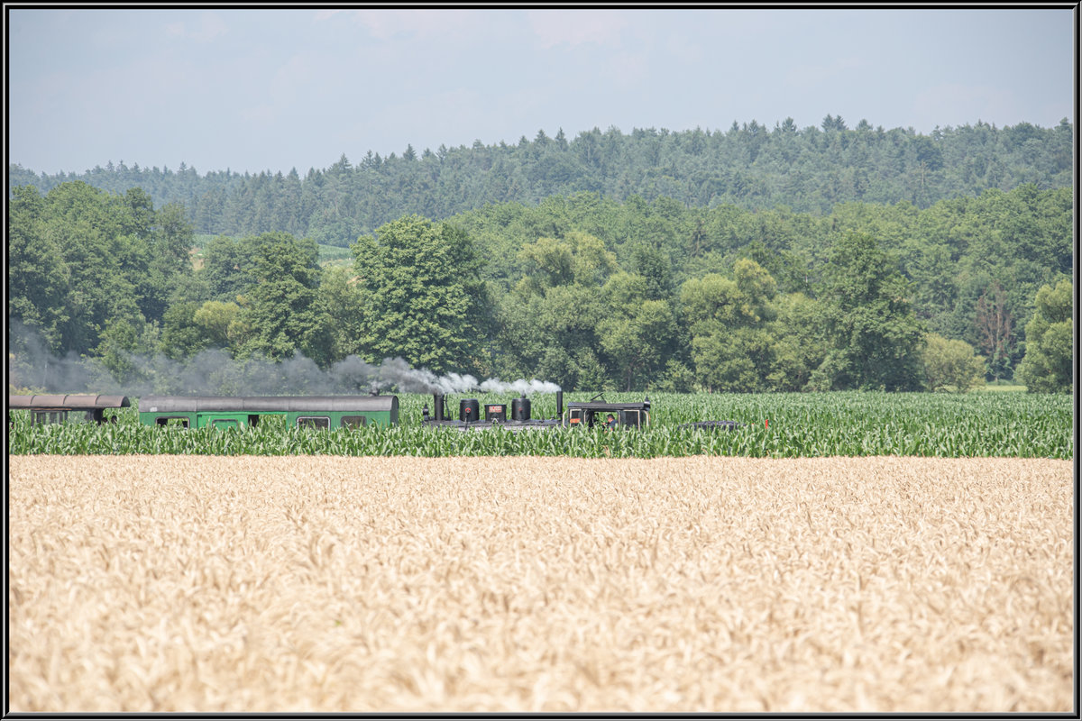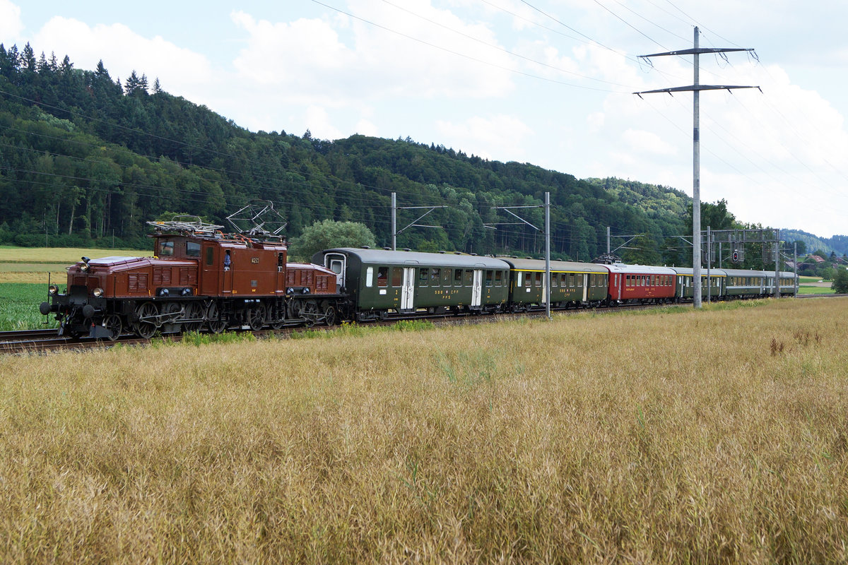 Sonderzug Thun - Bern vom 7. Juli 2019 mit Ce 6/8 14253, AS 2801, AS 2802, A 2251, WR 700, B 5560 sowie SR 611 bei Bollodingen.