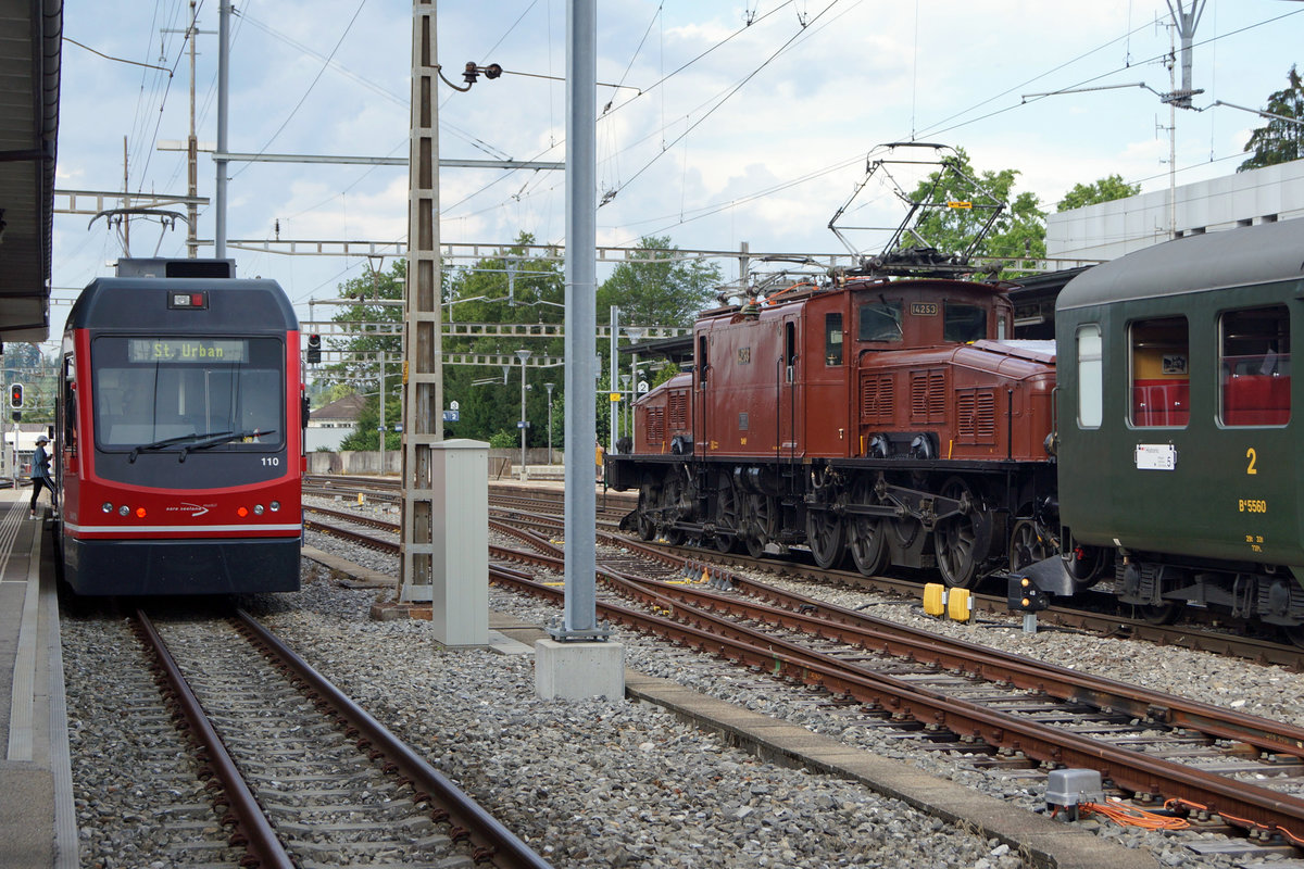Sonderzug Thun - Bern vom 7. Juli 2019 mit Ce 6/8 14253, AS 2801, AS 2802, A 2251, WR 700, B 5560 sowie SR 611 anlässlich der Bahnhofsdurchfahrt Langenthal.