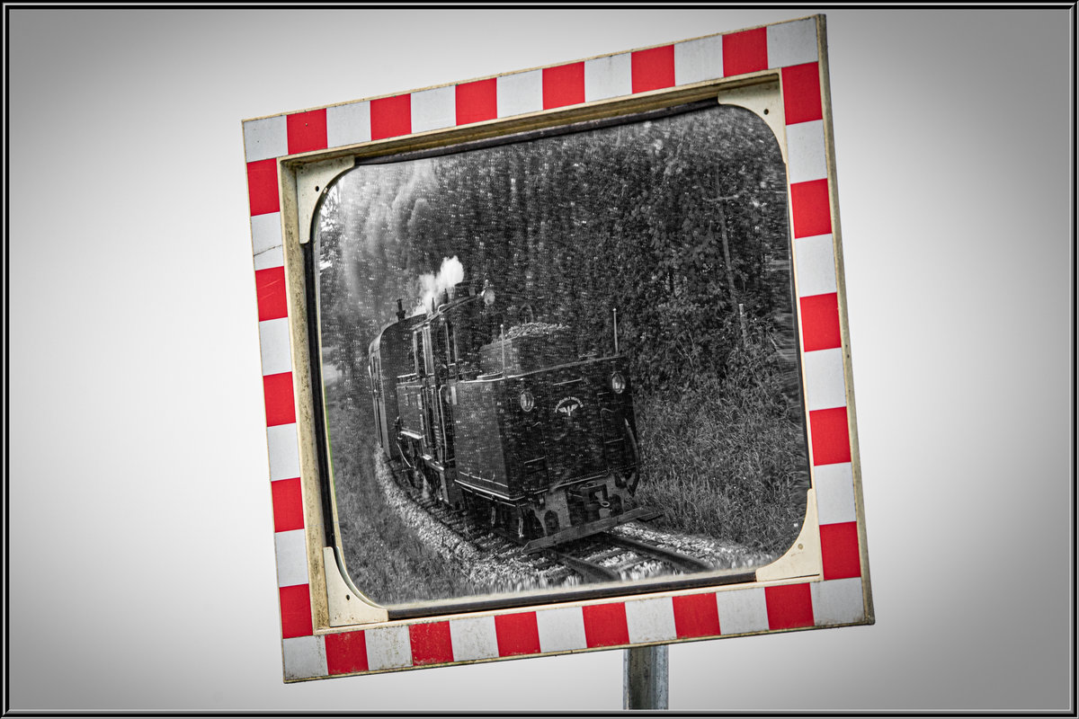 Hier im Bild das Abbild der D6 im Bahnhof Stainz die sich in der Pfütze spiegelt.