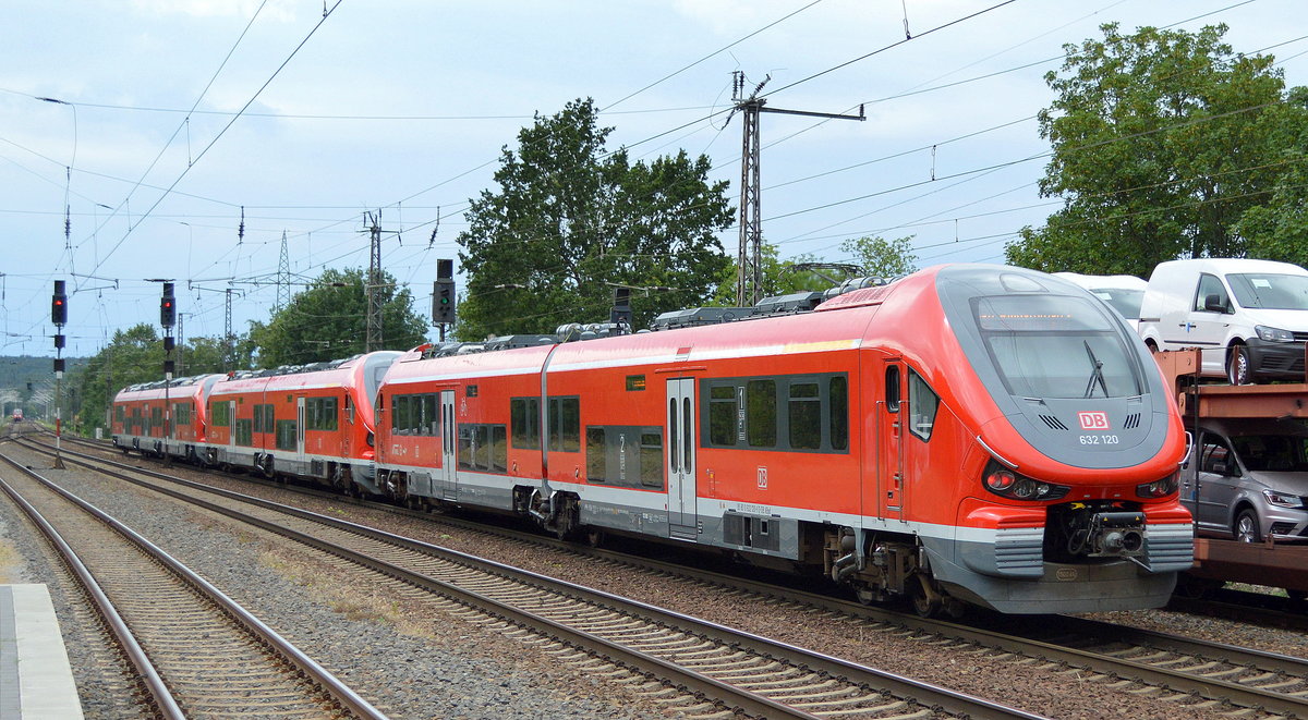 Wahrscheinlich nach erneuter Inspektion in Polen zurück in ihre Einsatzgebiete oder ganz Neue? Jedenfalls fuhren ein Pesa Link III der DB Regio (Dreieichbahn) 633 505 (95 80 0 633 505-2 D-DB Bdp) + zwei Pesa Link II der DB NWL (VRR) 632 615 (95 80 0 632 615-0 D-DB Bdp) und 632 620/120 (95 80 0 632 620-0 D-DB/ 95 80 0 632 120-1 D-DB Bdp) am 06.07.19 durch den Bahnhof Saarmund.