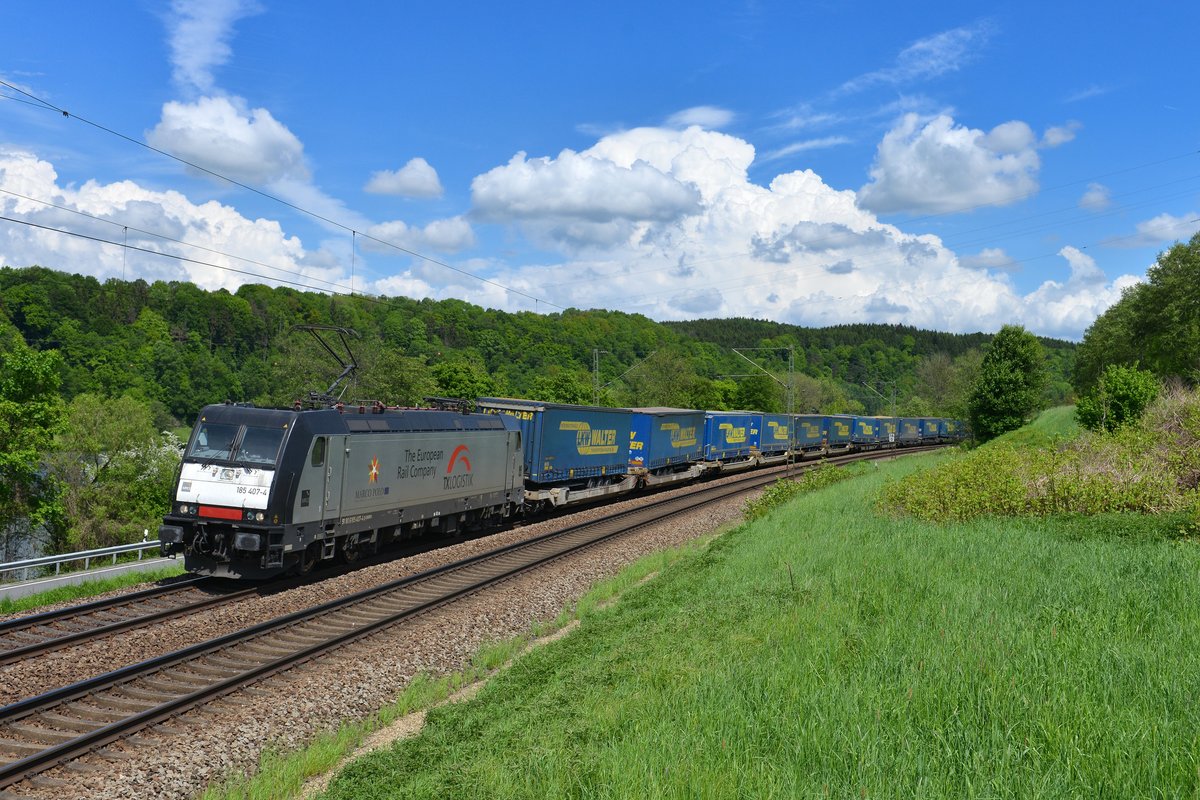 185 407 mit DGS 43946 am 15.05.2017 bei Sandbach.