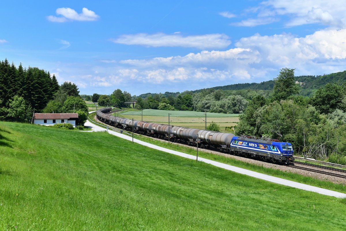 182 600 mit einem Kesselzug am 17.05.2019 bei Stephansposching.