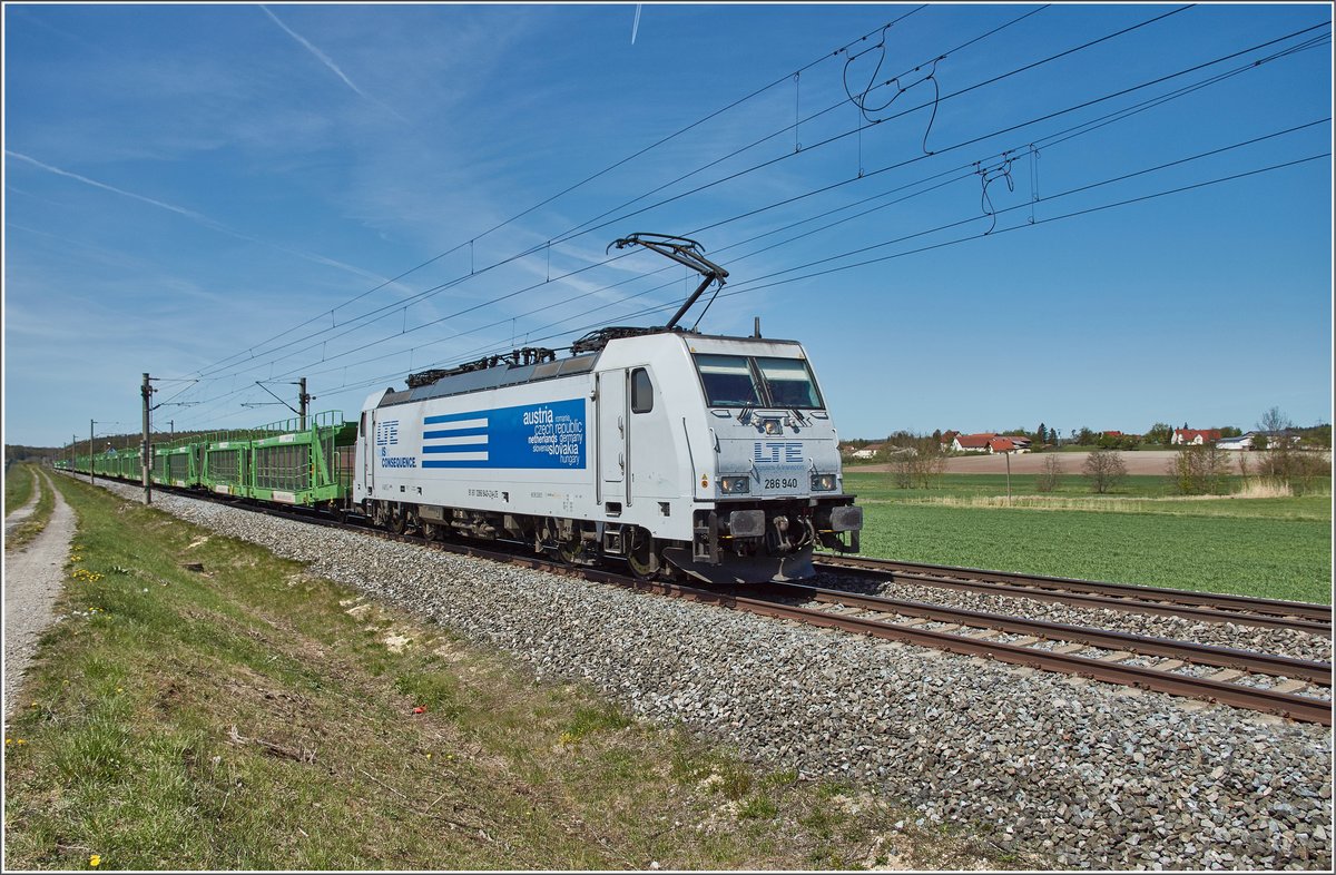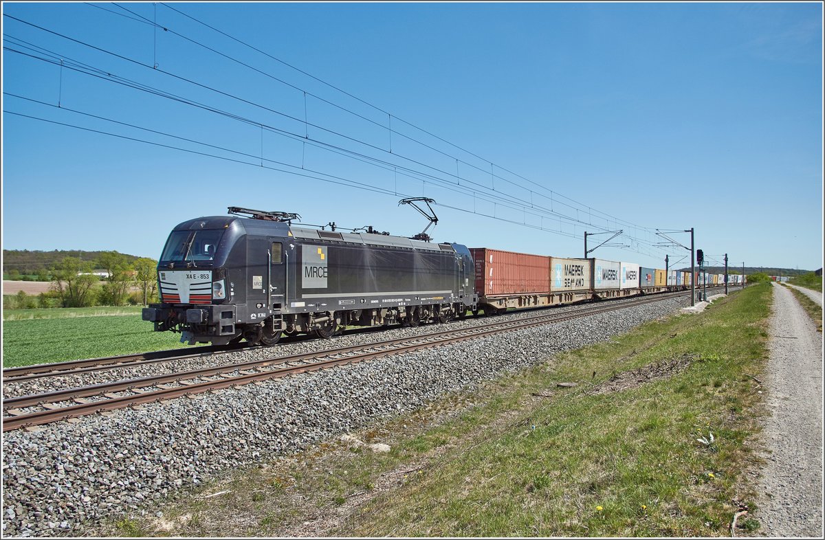 185 503 mit einem Stahlzug am 17.04.2019 bei Wierthe.