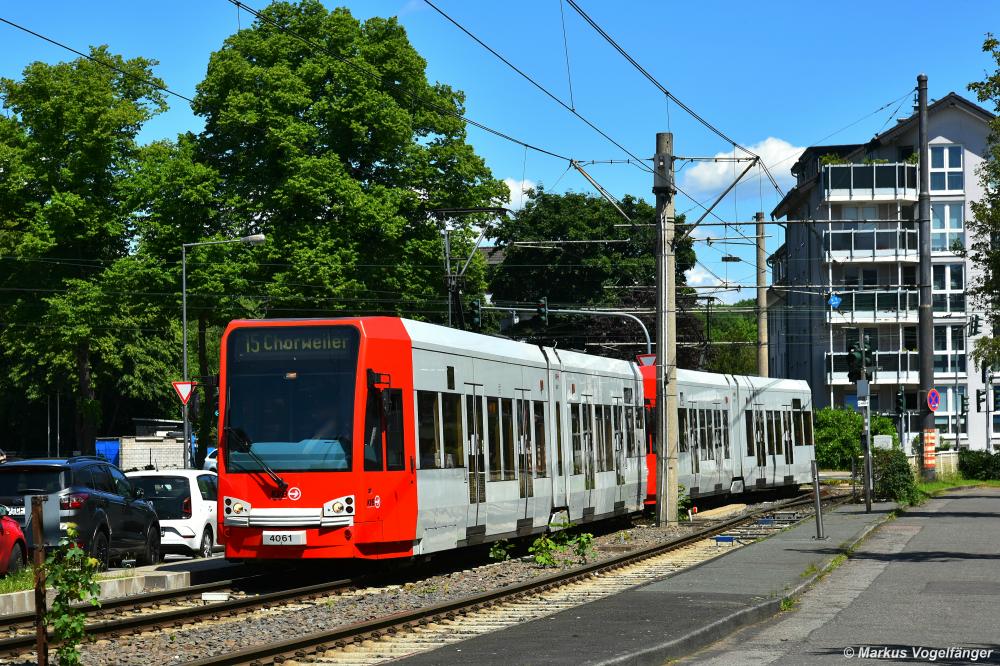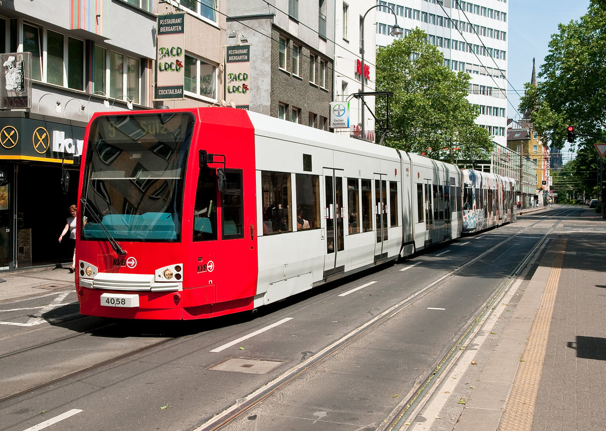 Die Linie 9 mit der Wagennummer 4058 auf dem Weg nach Sülz. Aufgenommen 1.6.2019.