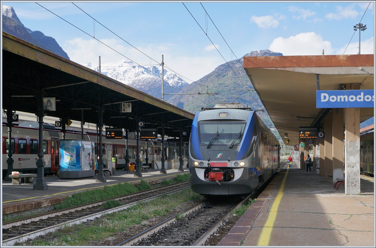 Ein FS Trenitalia ALe 501 ME wartet in Domodossola auf die Abfahrt nach Novara.