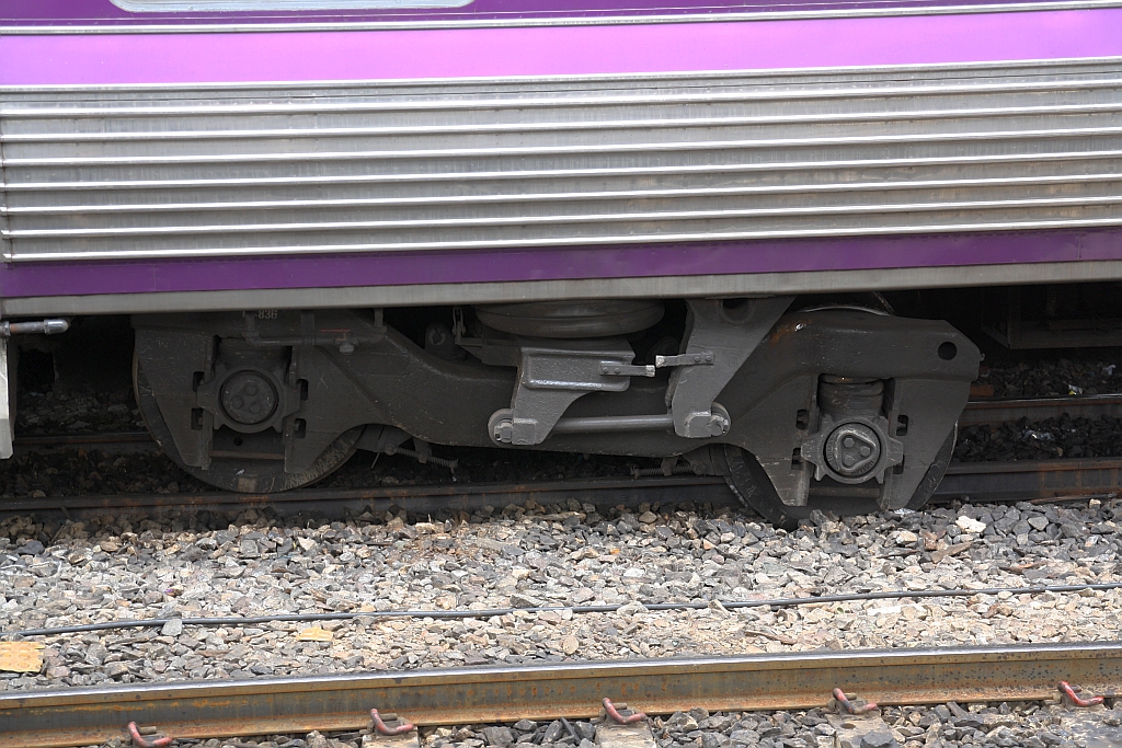 Entgleistes Drehgestell des บชท.ป. 204 (บชท.ป. =ASC./Air-Conditioned Second Class Carriage) am 15.Mai 2018 in Bangkok Hua Lamphong.
