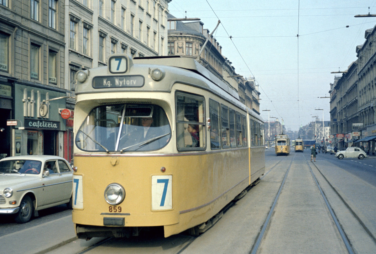 København / Kopenhagen Københavns Sporveje SL 7 (DÜWAG/Kiepe-GT6 859) København K, Frederiksborggade / Nørre Farimagsgade im April 1971. - Scan eines Farbnegativs. Film: Kodak Kodacolor X.