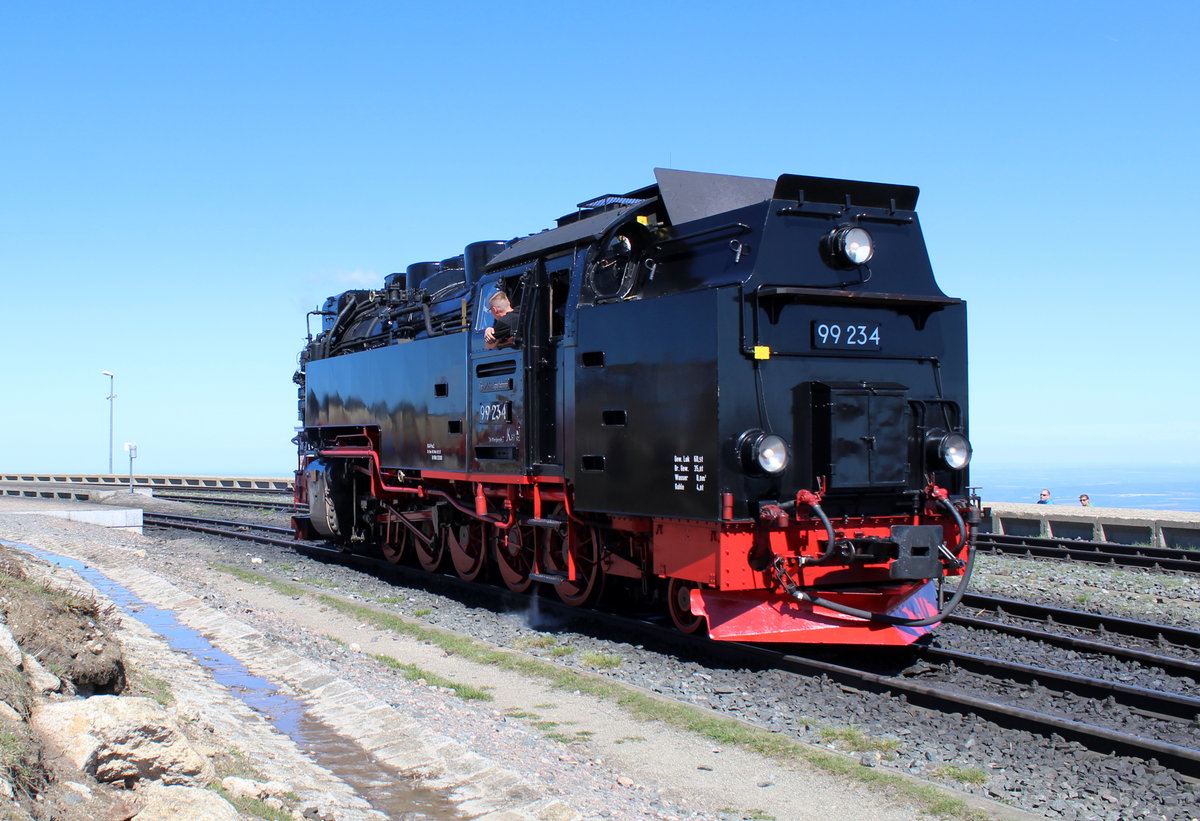 Lokportrait der HSB 99 234 [99 7234-0], welche am 25.04.19, auf dem Brocken, vor den HSB8922 rangierte, der wieder nach Wernigerode fuhr.