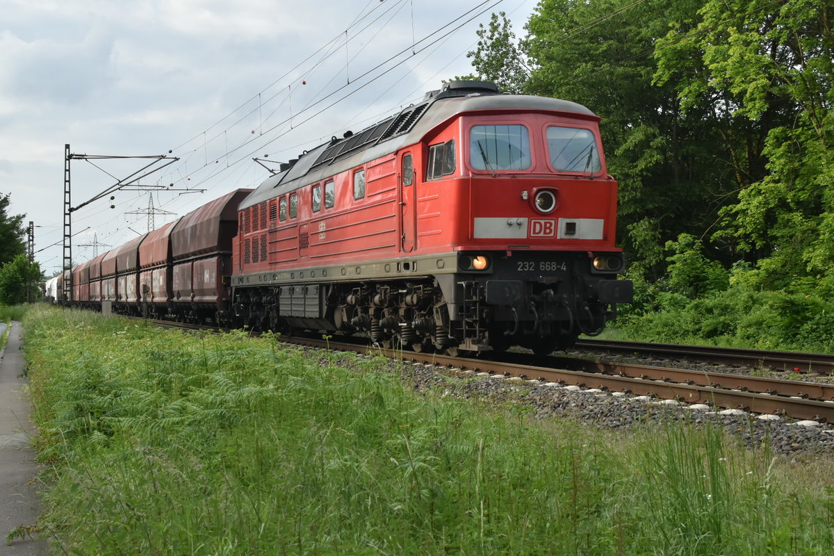 Mit Selbstentladern zum Kalkwerk. 231 668 in Lintorf am Donnrstag 30.5.2019