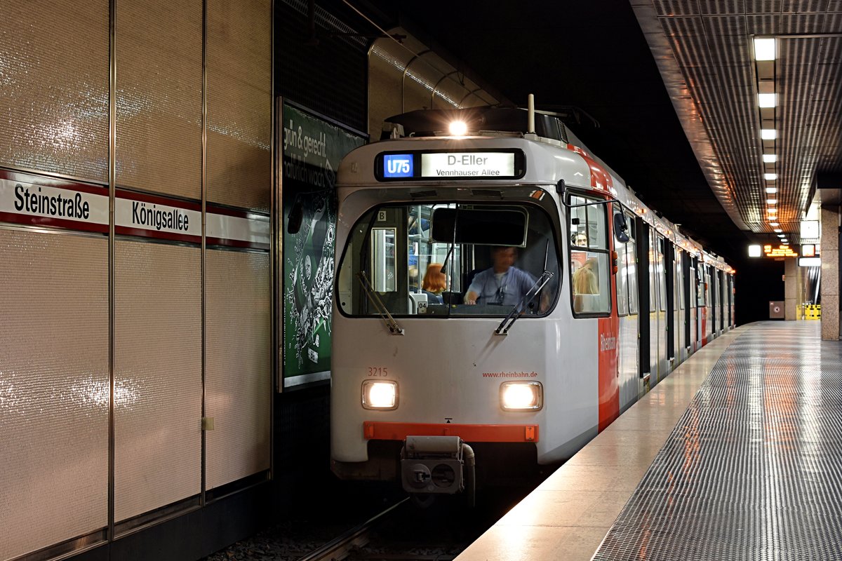 Hier steht Wagen 3215 abfahrbereit unter der Kö (Haltestelle "Steinstr./Königsallee").