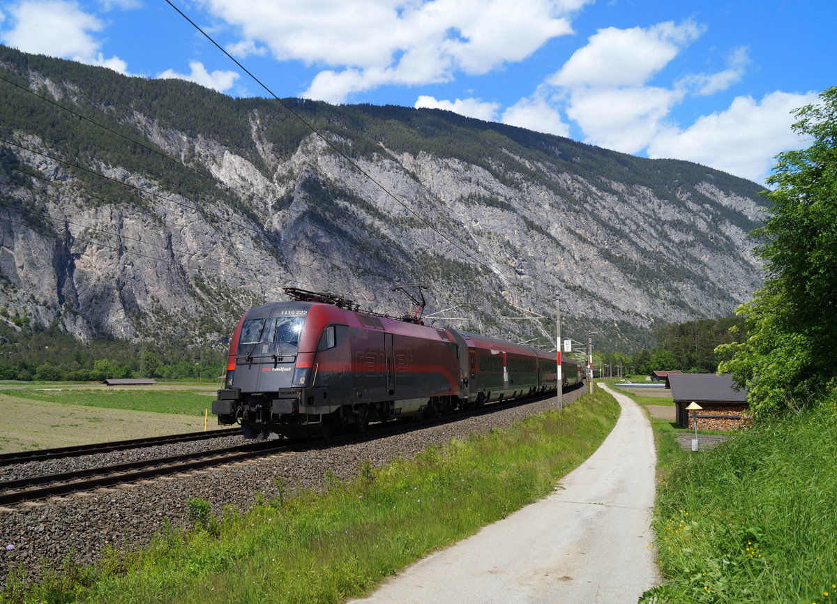 Die 2016 075 und die 101 010 mit einem Umgeleiteten EC am 09.06.2019 unterwegs bei Dorfen.