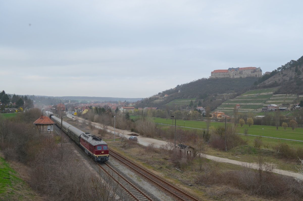 132 293-2 EBS Erfurter Bahnservice Gesellschaft mbH mit dem Rotkäppchen-Express I (Neustadt Orla - zur Winzerstadt Freyburg) in Freyburg (Unstrut) 24.03.2019