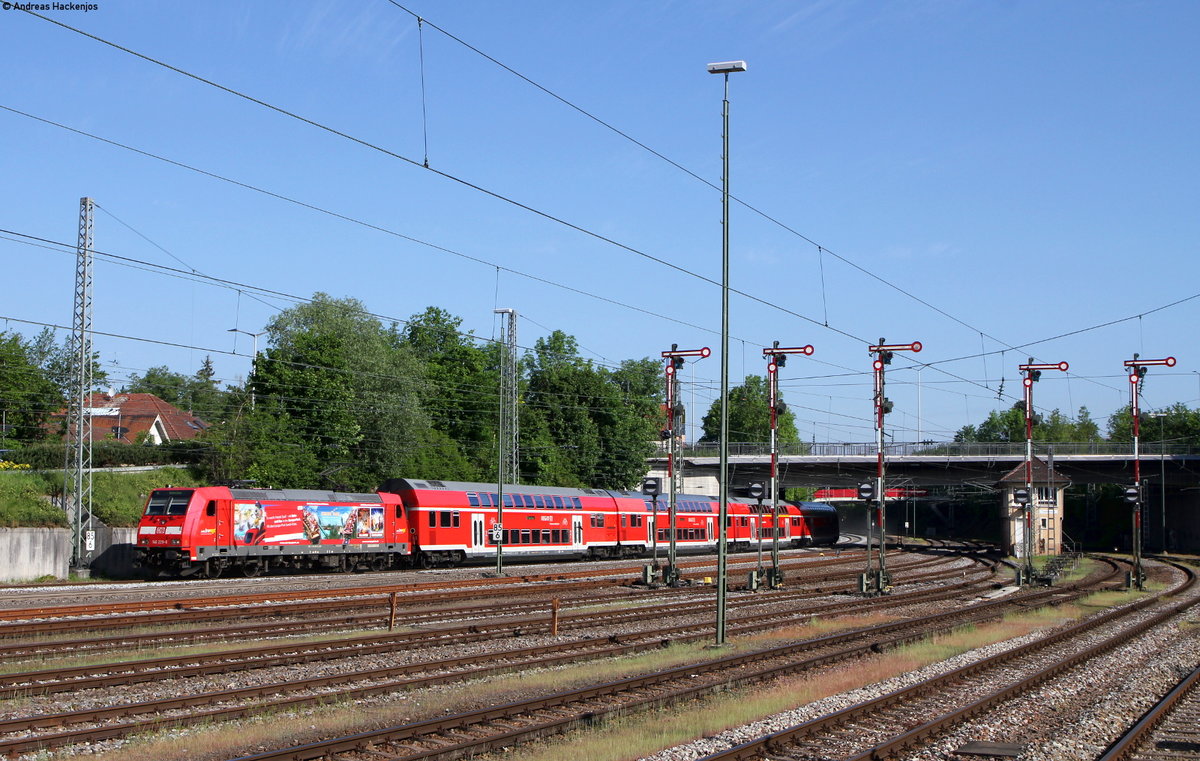 182 020 erreicht Hamburg Hauptbahnhof mit einem RE1 "Hanse Express" aus Rostock, am 17.05.2019.