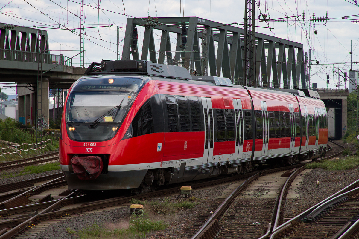 644 003 kommt aus dem Deutzerfeld um einen RB38 Umlauf nach Bedburg in Köln Messe/Deutz zu beginnen, am 12.05.2019.