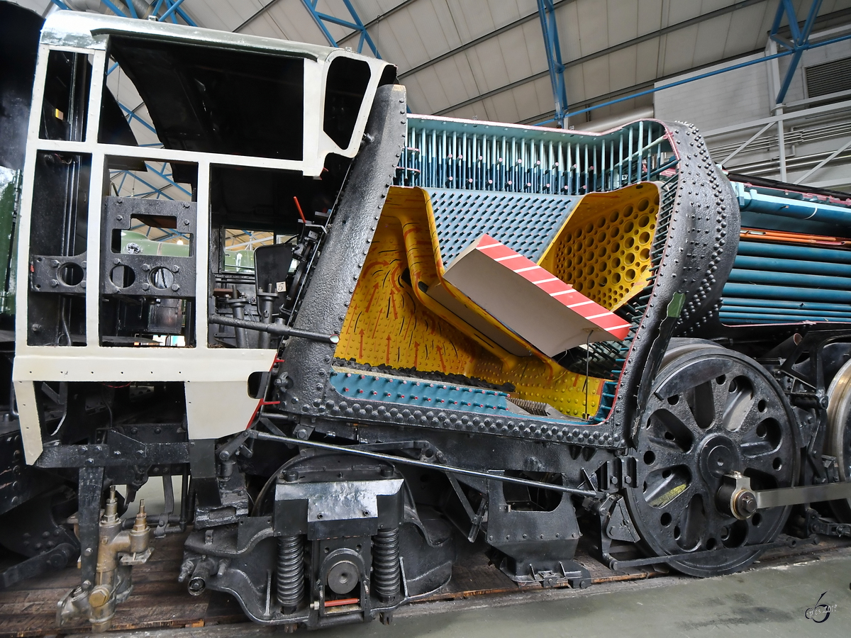 Die beeindruckend gestaltete Feuerbüchse der aufgeschnittenen Dampflokomotive No 35029 "Ellerman Lines". (National Railway Museum York, Mai 2019)