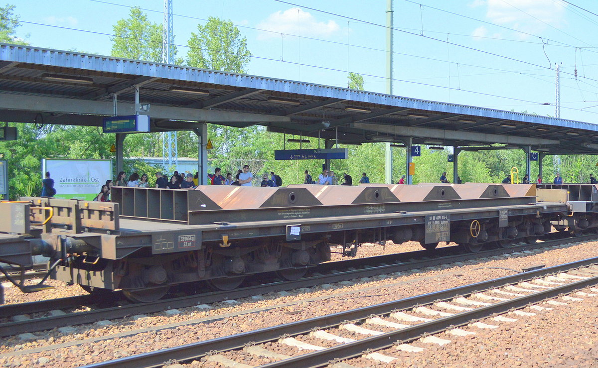 Drehgestell-Flachwagen mit Lademulden für Coils vom Einsteller On Rail GmbH mit der Nr.33 RIV 80 D-ORME 4870 014-4 Sahmms am 05.06.19 Bf. Flughafen Berlin-Schönefeld.