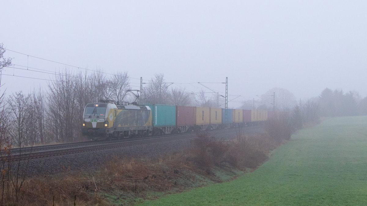 Leider ist das Motiv nicht optimal getroffen, denn der Mast steckt in der Lok. Ich konnte jedoch nicht weiter nach hinten gehen, da dort ein anderer Zug mir die Sicht versperrte. So blieb mir nur diese Möglichkeit.