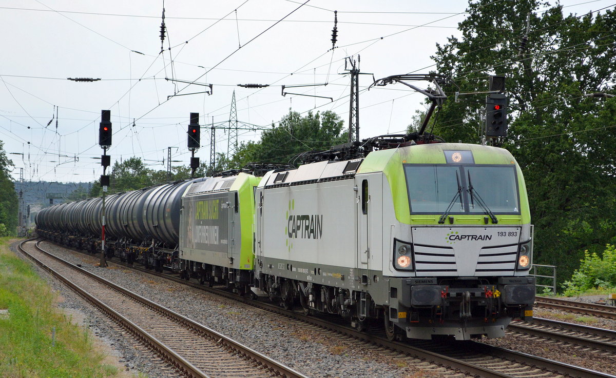 ITL - Eisenbahngesellschaft mbH mit "193 893" [NVR-Nummer: 91 80 6193 893-5 D-ITL] mit "185 548-6" [NVR-Nummer: 91 80 6185 548-5 D-ITL] und Kesselwagenzug am Haken am 06.06.19 Saarmund.