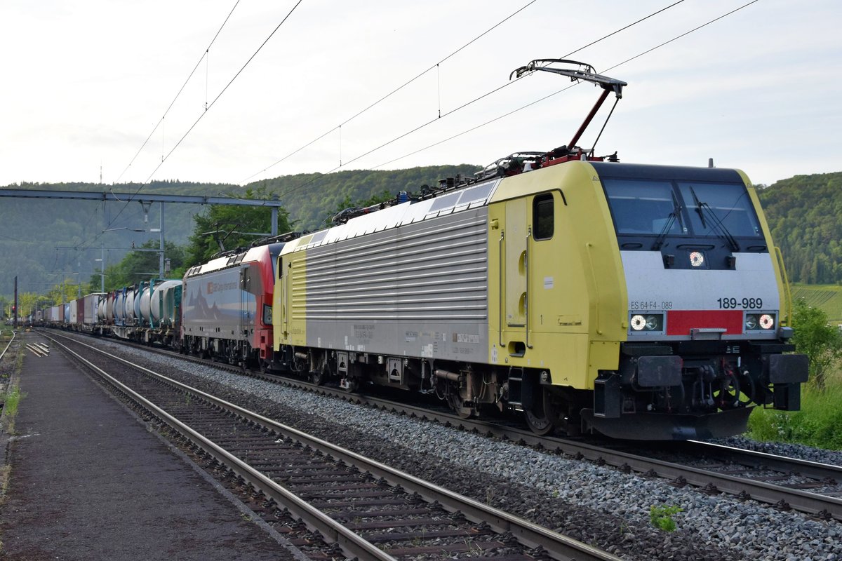 189 989 zusammen mit 193 462 am Abend des 19.06.2019 bei der Durchfahrt in Hornussen AG (CH) in Richtung Süden.