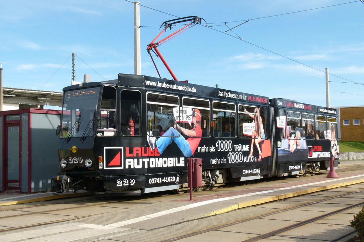 24. Oktober 2015, Straßenbahn in Plauen/Vogtland. Triebwagen KT4D-M Nr. 229