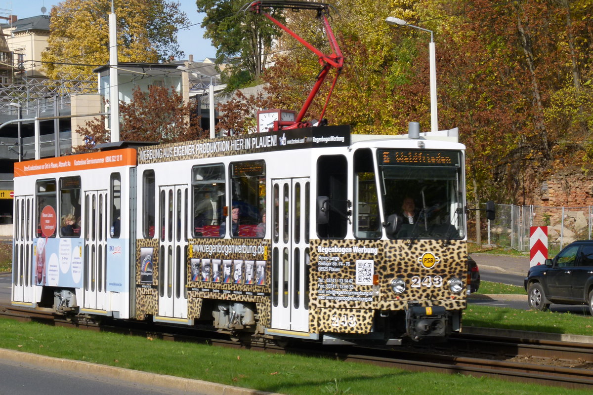 24. Oktober 2015, Straßenbahn in Plauen/Vogtland. Triebwagen KT4D-M Nr. 243