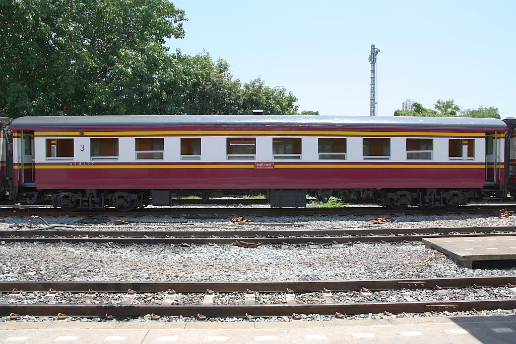 บชส. 457 (บชส. =BTC./Bogie Third Class Carriage) am 22.Juni 2019 in der Thon Buri Station.