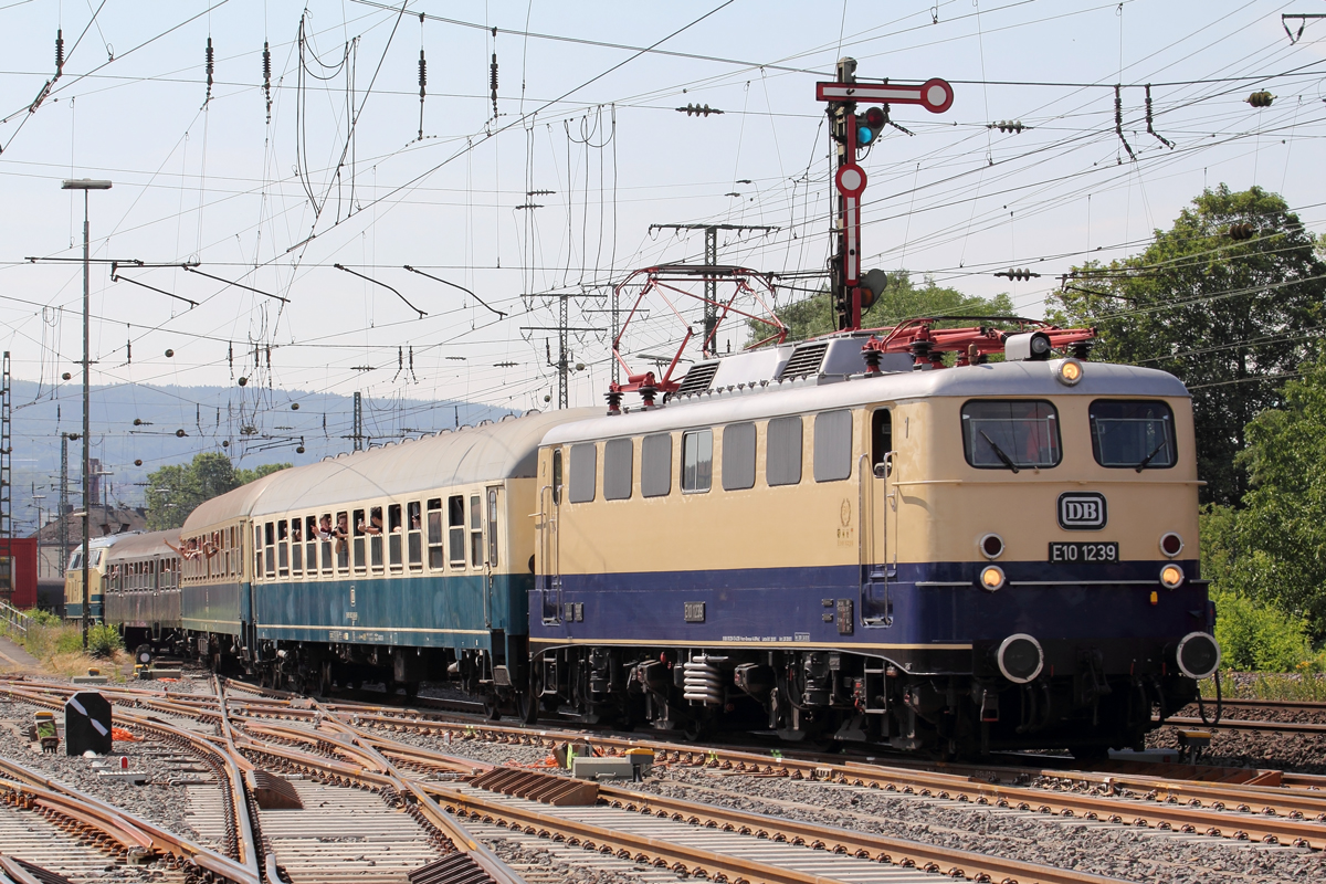 AKE E 10 1309 mit TEE Rheingold Sonderzug von Binz nach Koblenz am 23.6.2019 um 16.11 Uhr am Ortsrand von Hasbergen.