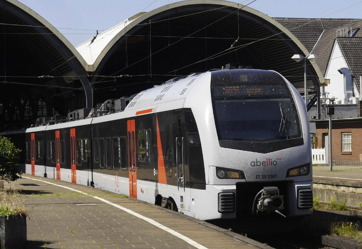 Erforderlich wäre der Mehrsystem-Triebzug 25 2307 (2429 007) auf der (verkürzten) RB 35 Mönchengladbach - Oberhausen nicht. Üblicherweise laufen hier 1429er. Aufnahme: MG Hbf, 27.6.19.