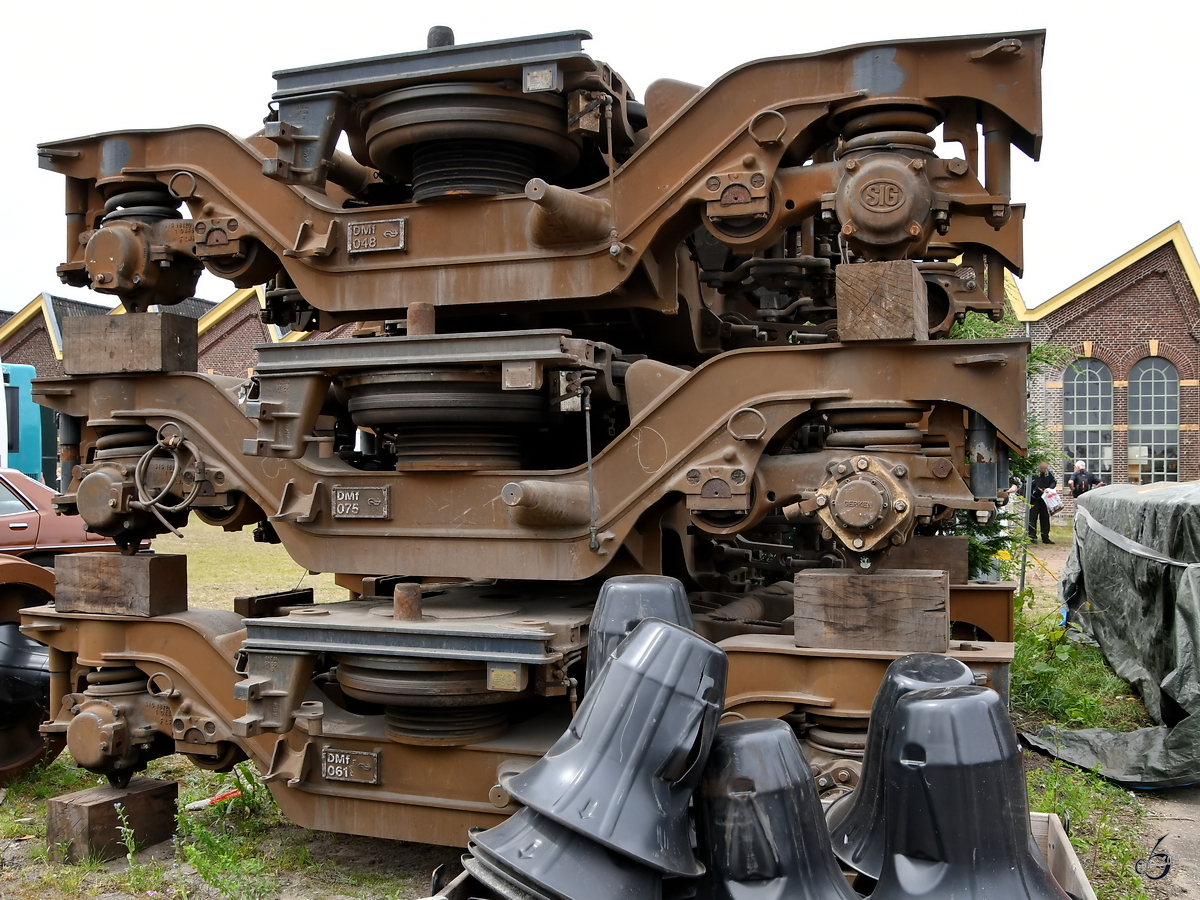 Gestapelte Drehgestelle wohin das Auge reicht. (Blerick, Mai 2019)