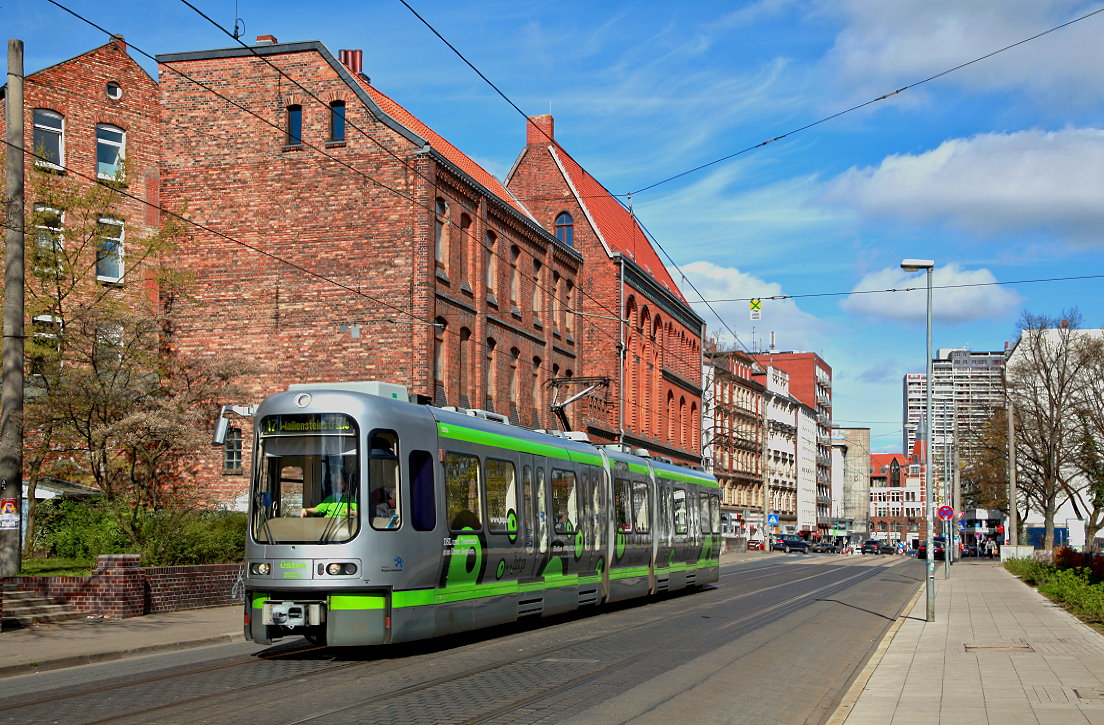 Anlässlich der Berufsmesse "IdeenExpo" konnte man auf der Sonderlinie 16 TW3000-Züge beobachten. Hier sind am 21. Juni 2019 die Wagen 3077 und 3088 kurz vor Erreichen der Haltestelle "Messe Ost/EXPO Plaza" von der Straßenbrücke Mailänder Straße aus zu sehen.