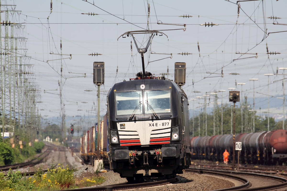 X4-E 670 mit einem KLV-Zug bei Oberhessbach Richtung Ansbach, 23.02.2019