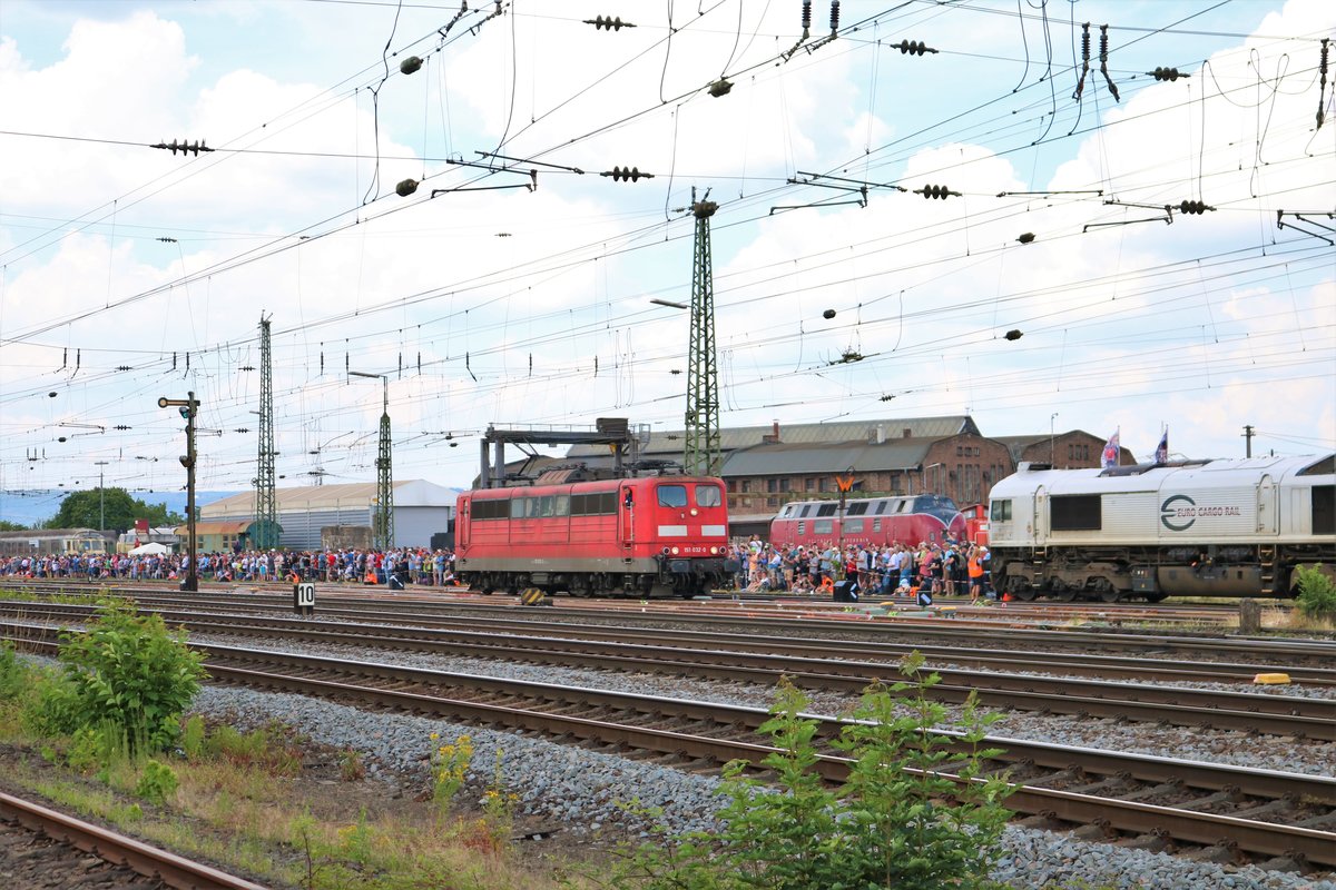 Railpool 151 032-0 beim Sommerfest im DB Museum Koblenz Lützel am 22.06.19. Von einen Gehweg aus fotografiert. Die Bundespolizei hat die Fotografen überwacht damit nichts passiert