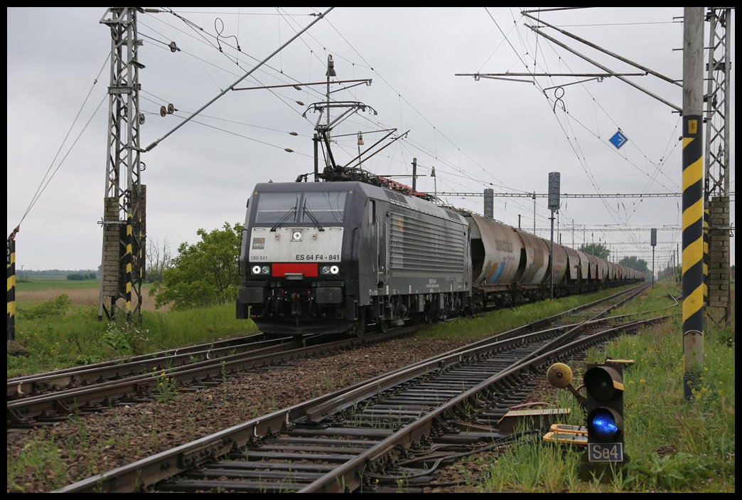 MRCE ES64F4-841 ist hier mit einem Güterzug am 12.5.2019 in der Slowakei kurz vor Galanta in Richtung Grenzbahnhof Sturovo unterwegs.
