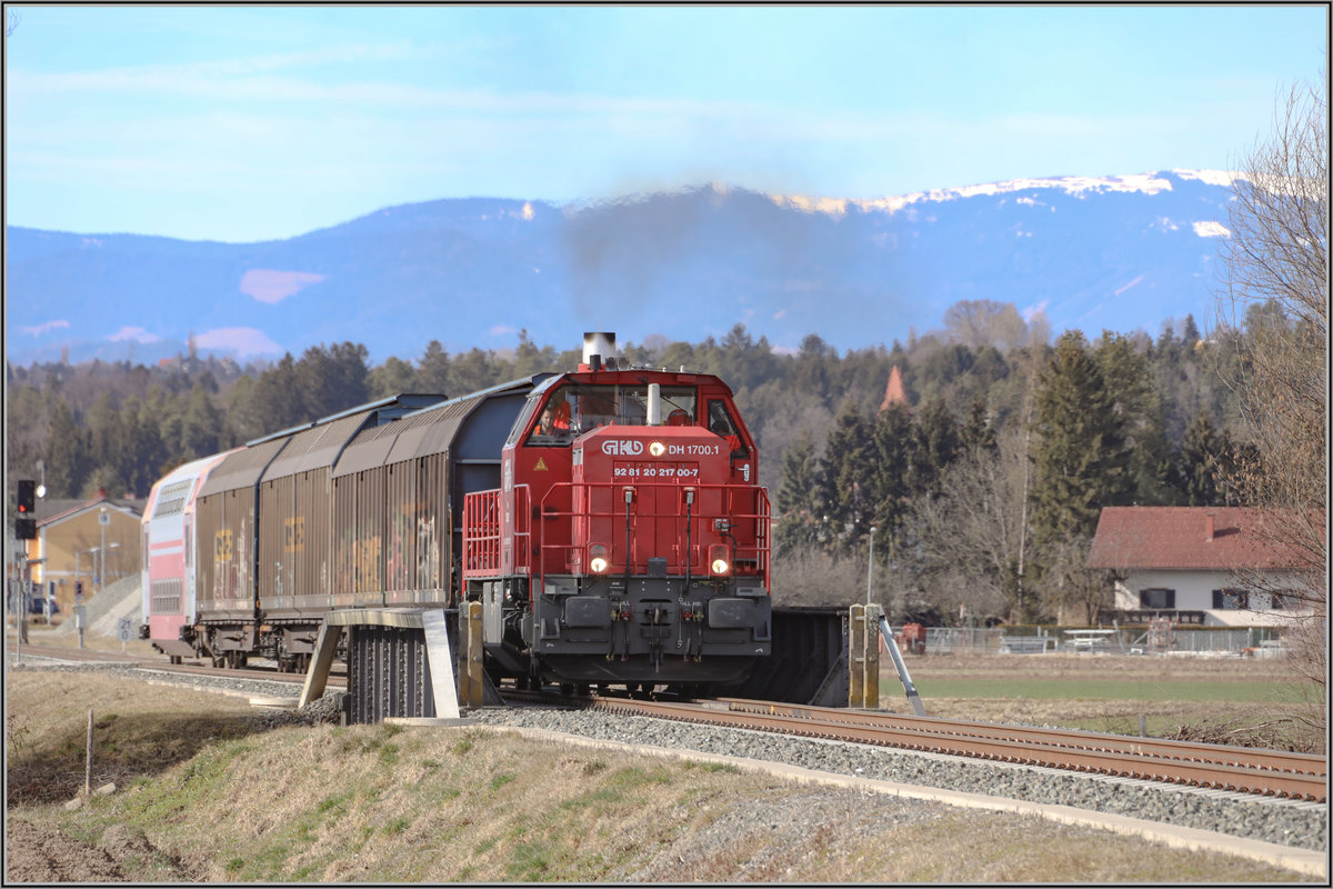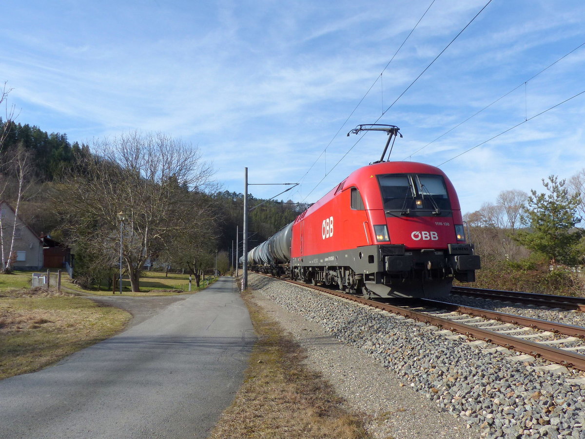 jeweils zwischen Lieboch und Söding Mooskirchen rollte diese Zugkomposition. Ausfahrt Lieboch für 2170.000 an diesem 24 Grad warmen letzten Februar Tag 2019