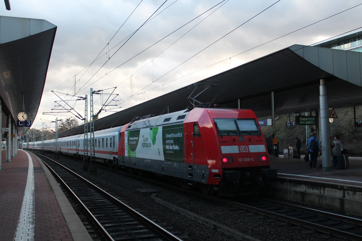 101 060 "Kirchentag 2019" war am 10.03.2019 mit IC 2375 in Kassel-Wilhelmshöhe zu Gast. Hier bei der Ausfahrt aufgenommen.