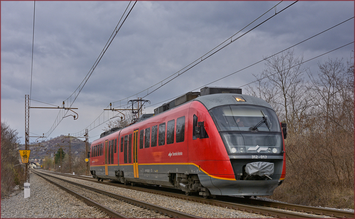 SŽ 312-017 fährt durch Maribor-Tabor Richtung Pragersko. /19.3.2019