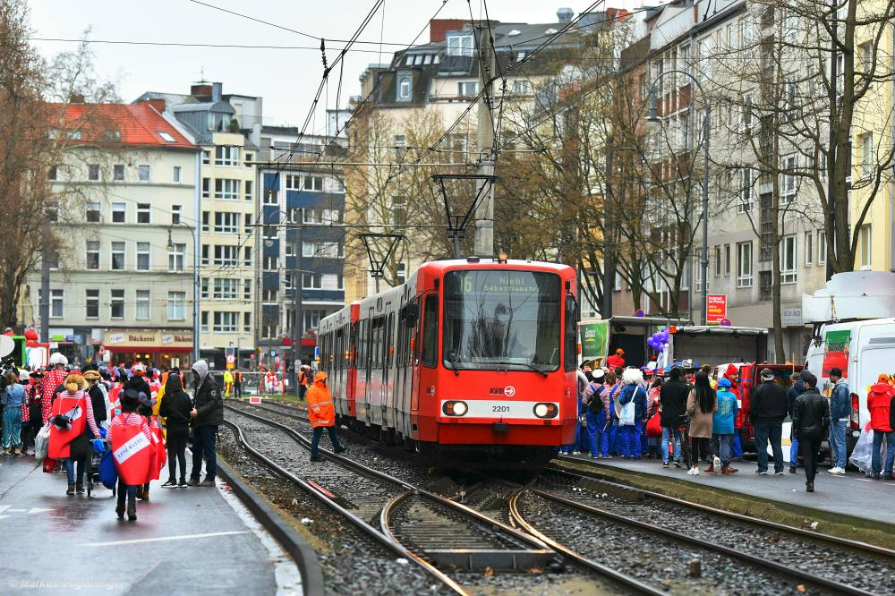 2201 während der Wendefahrt auf dem Gleiswechsel Chlodwigplatz am 03.03.2019.